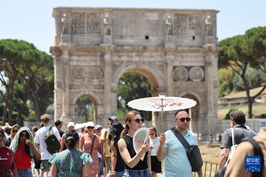 6月27日,在意大利罗马,游客在君士坦丁凯旋门游览。