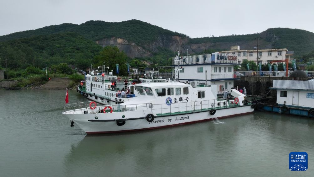 6月28日,“氨晖号”停靠在码头,准备在安徽合肥巢湖水域首航(无人机照片)。