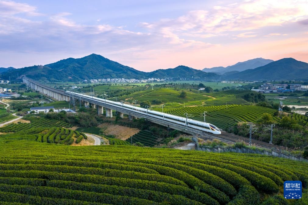 6月6日,复兴号动车组经过福建武夷山境内的合福高铁南岸特大桥。