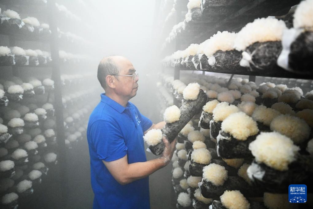 6月26日,福建宁德晟农农业开发有限公司技术人员在智慧菇房查看银耳生长情况。