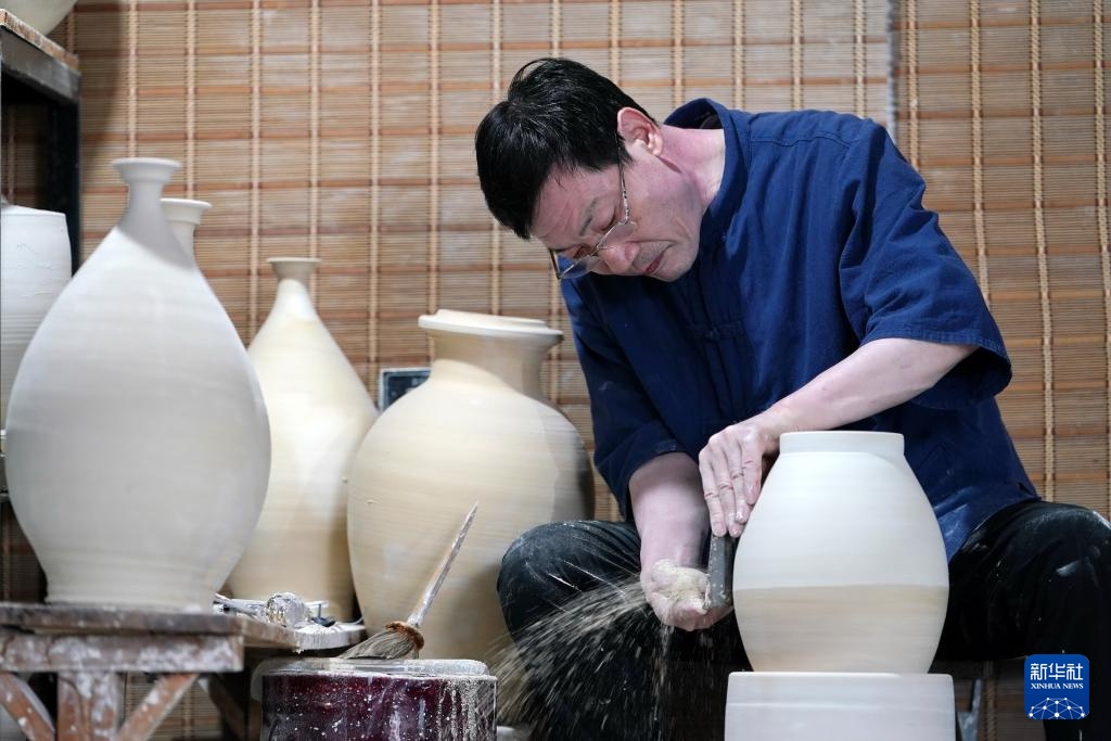 6月28日,在河北省临城县邢窑文化博览园,张志忠进行邢白瓷拉坯作业。