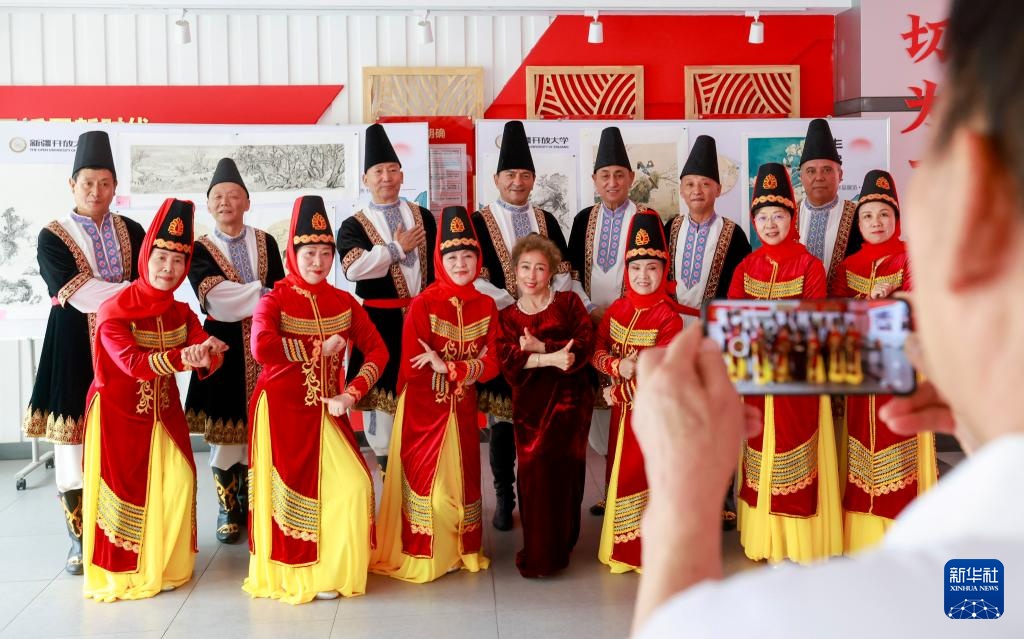 当日,新疆老年开放大学的“银龄”学员迎来了毕业时刻。一场以“石榴花开·同心筑梦”为主题的毕业典礼演出暨非遗体验活动在新疆老年开放大学举行,活动不仅全方位展示了老年学员的学习成果与艺术素养,同时通过校园开放日活动,将非遗体验引入学校,吸引了老年学员、学员亲友及周边社区居民热情参与。