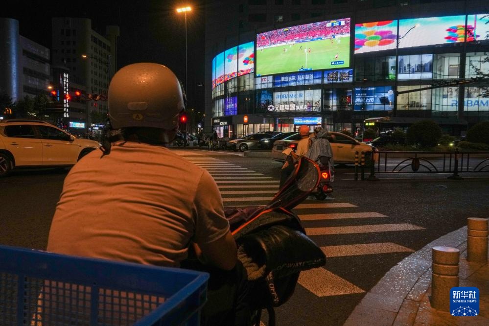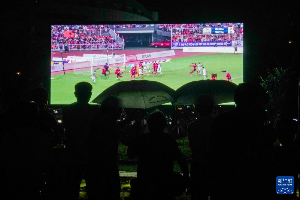6月29日,南通市内多处户外大屏进行“苏超”比赛直播。