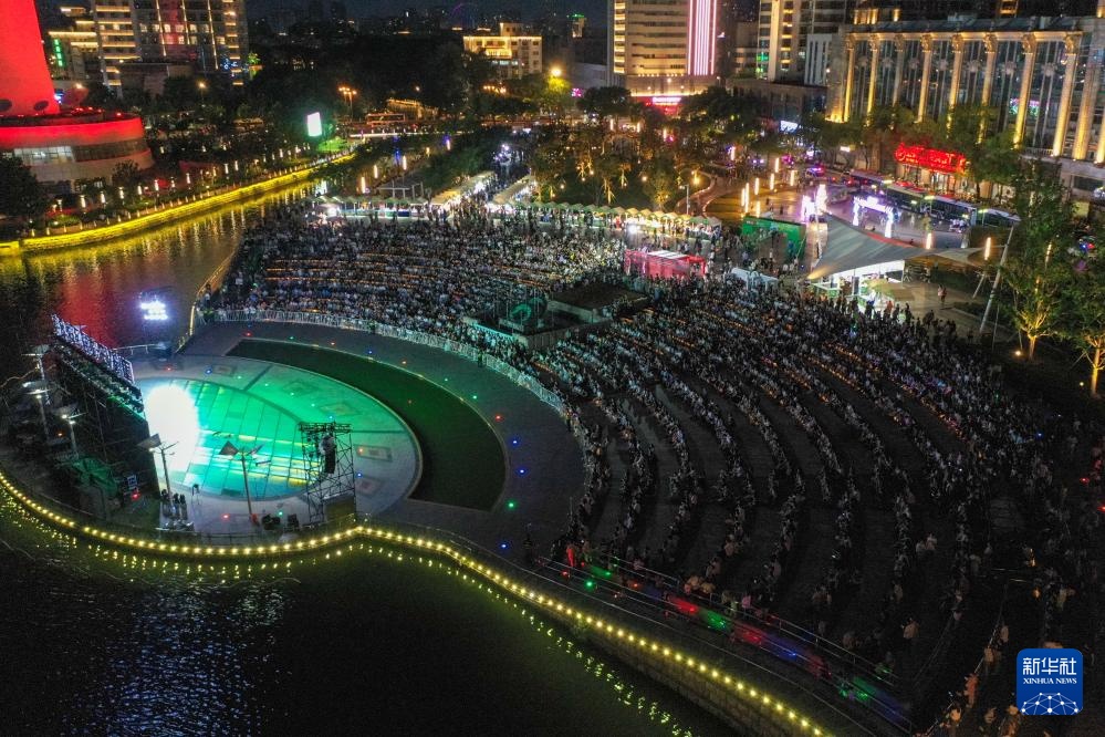 6月29日,市民、球迷在南通环西文化广场观看比赛直播(无人机照片)。