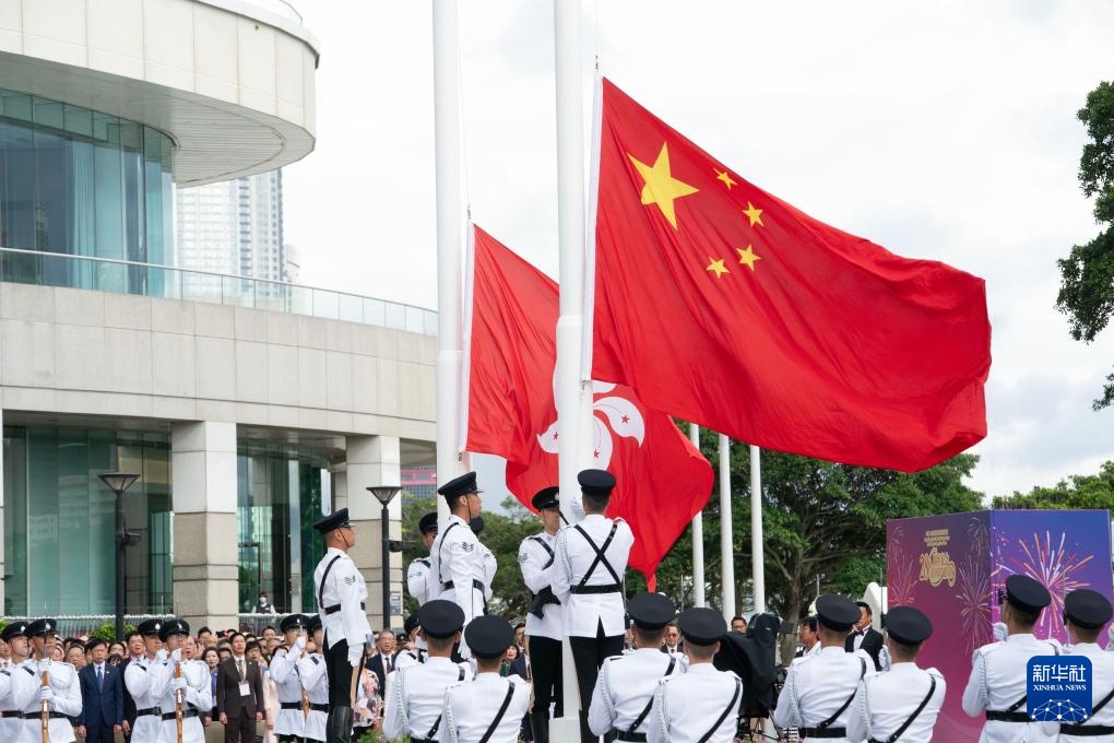 7月1日,香港特区政府在金紫荆广场举行升旗仪式,庆祝香港回归祖国28周年。