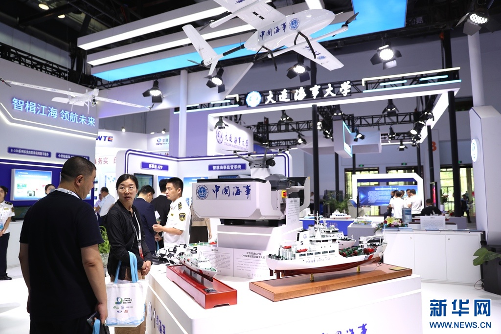 7月1日,观众在第十七届国际交通技术与设备展览会上参观交通运输部海事局展位。