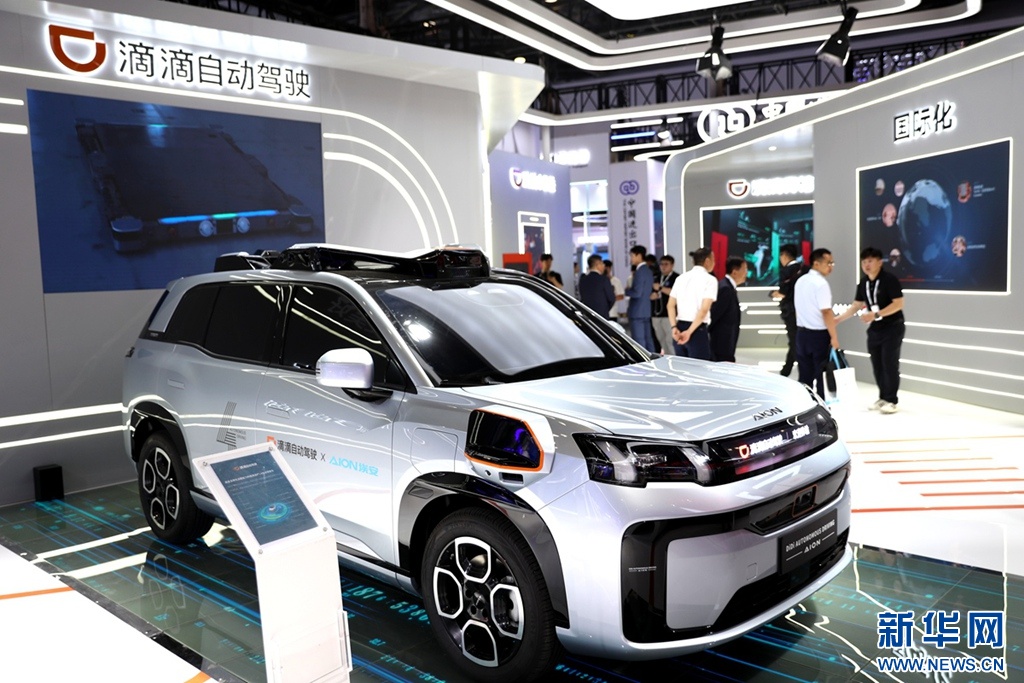 7月1日,在第十七届国际交通技术与设备展览会上拍摄的滴滴自动驾驶汽车。