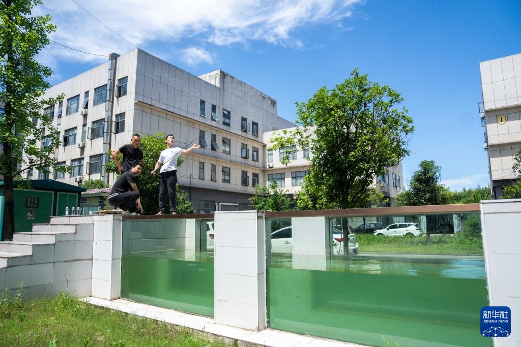 7月1日,在位于临湘市浮标小镇的湖南瑞琦户外用品有限公司,工人在测试钓具。