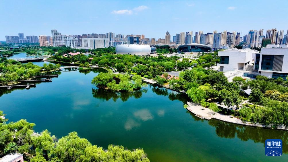 6月21日拍摄的山东省菏泽市赵王河湿地公园及周边景色(无人机照片)。