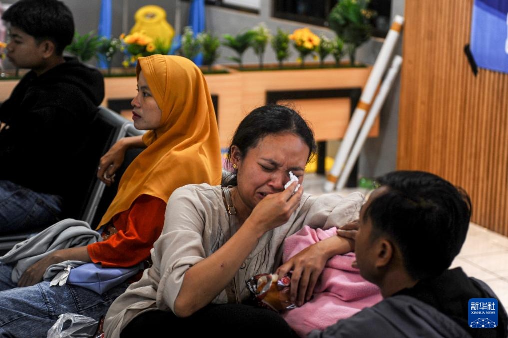 7月3日,乘客亲属在印度尼西亚东爪哇省的吉打邦港等待消息更新。