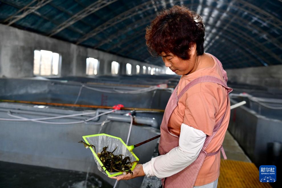 7月4日,在日照市东港区涛雒镇膨腹海马养殖基地,工作人员在查看膨腹海马长势。