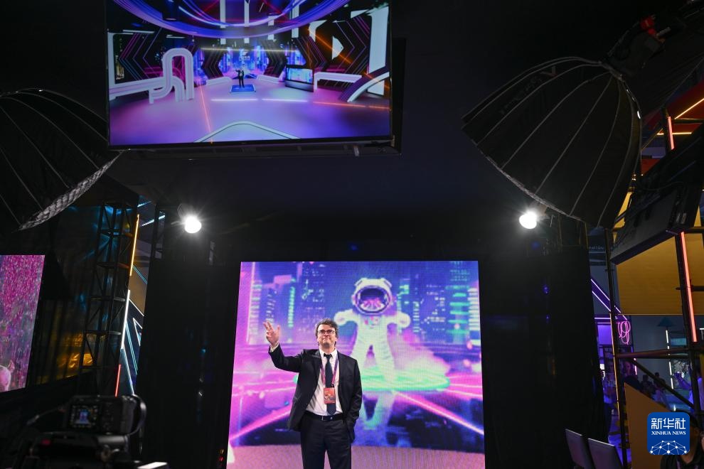 7月4日,重庆永川国际会展中心,嘉宾体验中国电影科技企业的虚拟拍摄技术。