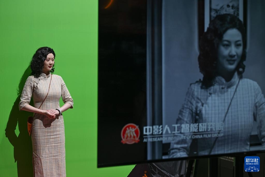 7月4日,重庆永川国际会展中心,中国电影科技企业为嘉宾展示“一人千面”AI技术。