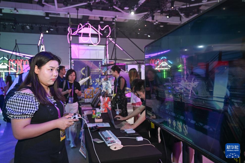 7月4日,重庆永川国际会展中心,嘉宾体验国产游戏。