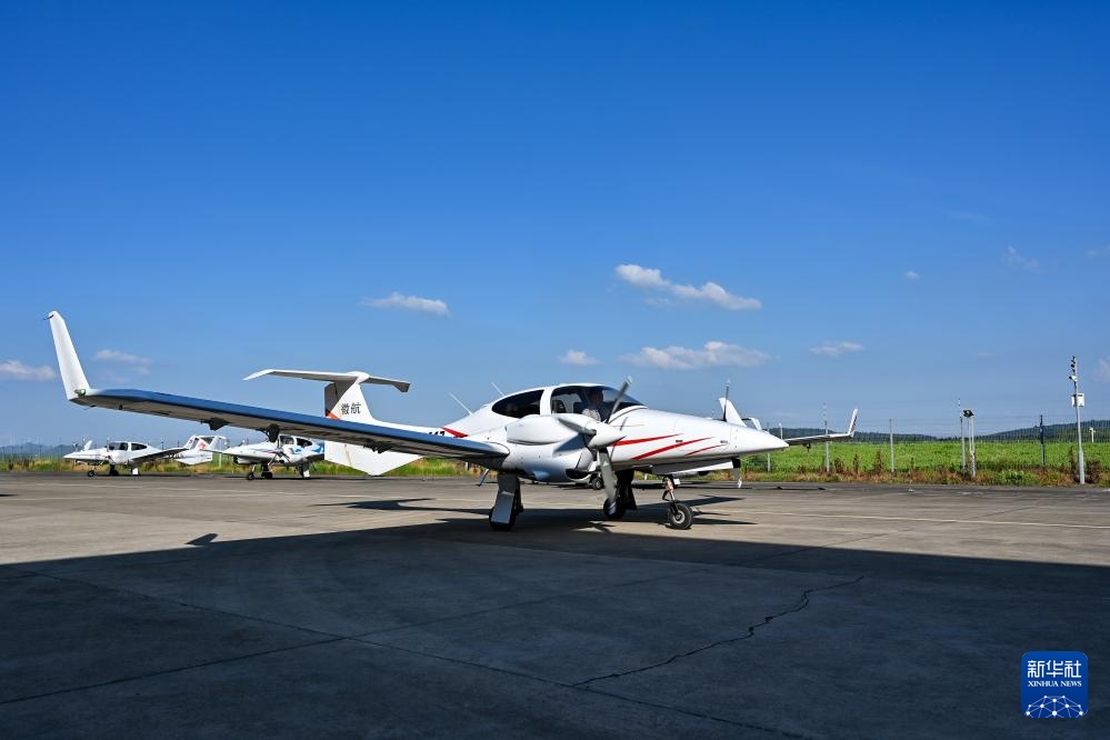 7月3日,在安徽省芜湖市湾沚区航空小镇,一架通航飞机准备起飞。