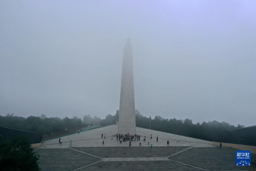 这是7月8日拍摄的百团大战纪念碑(无人机照片)。