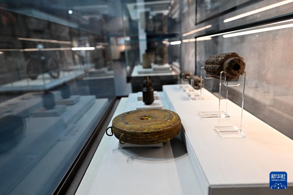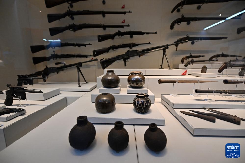 百团大战纪念馆展出的侵华日军使用的手榴弹和地雷(7月7日摄)。