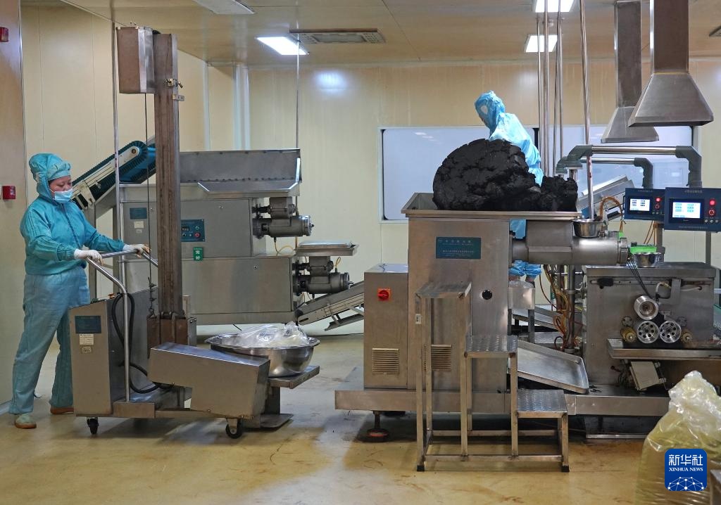 7月8日,工人在位于樟树市的仁和集团的丸剂智慧车间加工中医药产品。