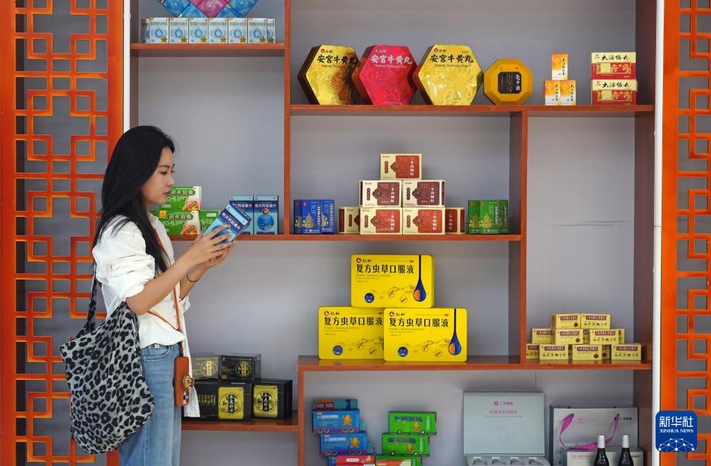 7月8日,游客在位于樟树市的仁和集团展厅参观中医药产品。