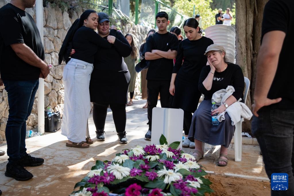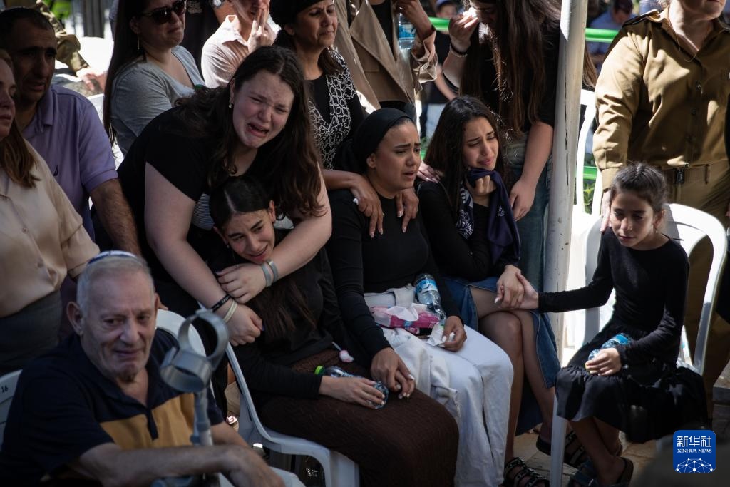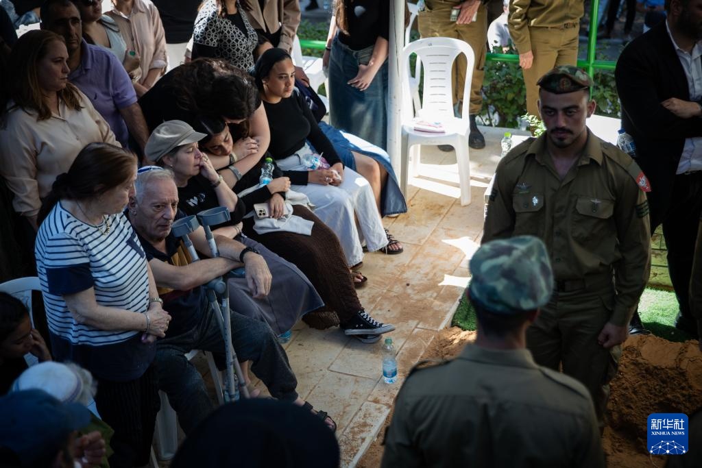 7月8日,人们在耶路撒冷赫茨尔山公墓参加一名在加沙地带北部身亡的以色列士兵的葬礼。