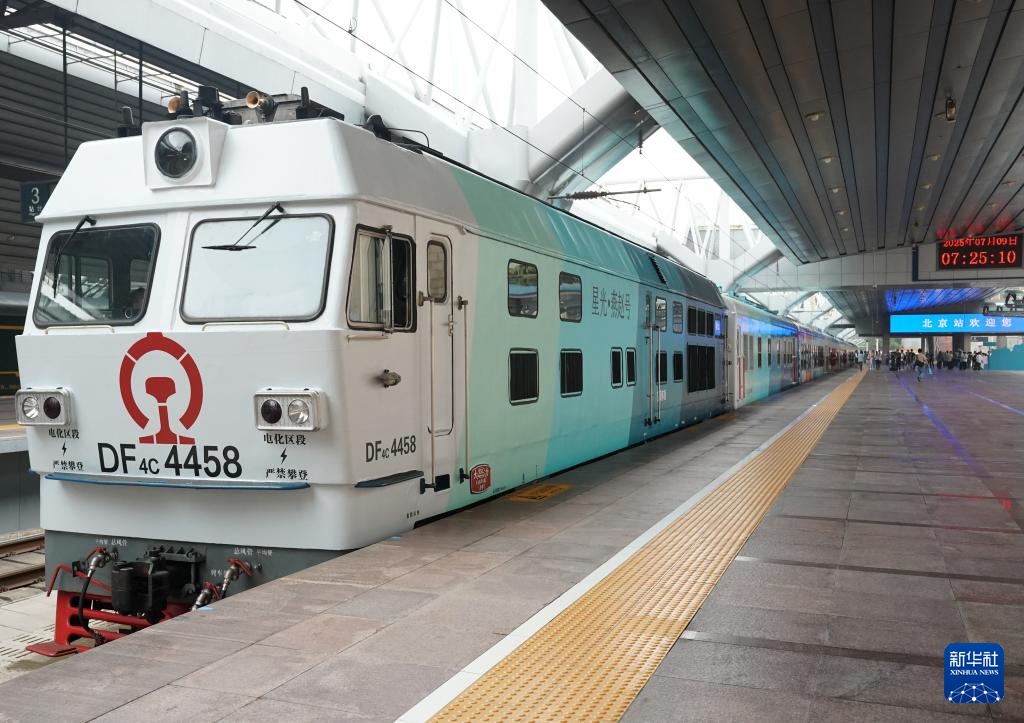 7月9日,京津冀首列观光旅游列车——“星光·燕赵号”停靠在北京站。