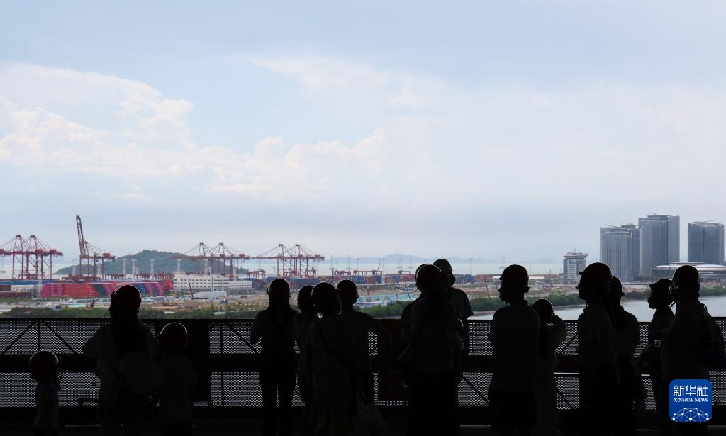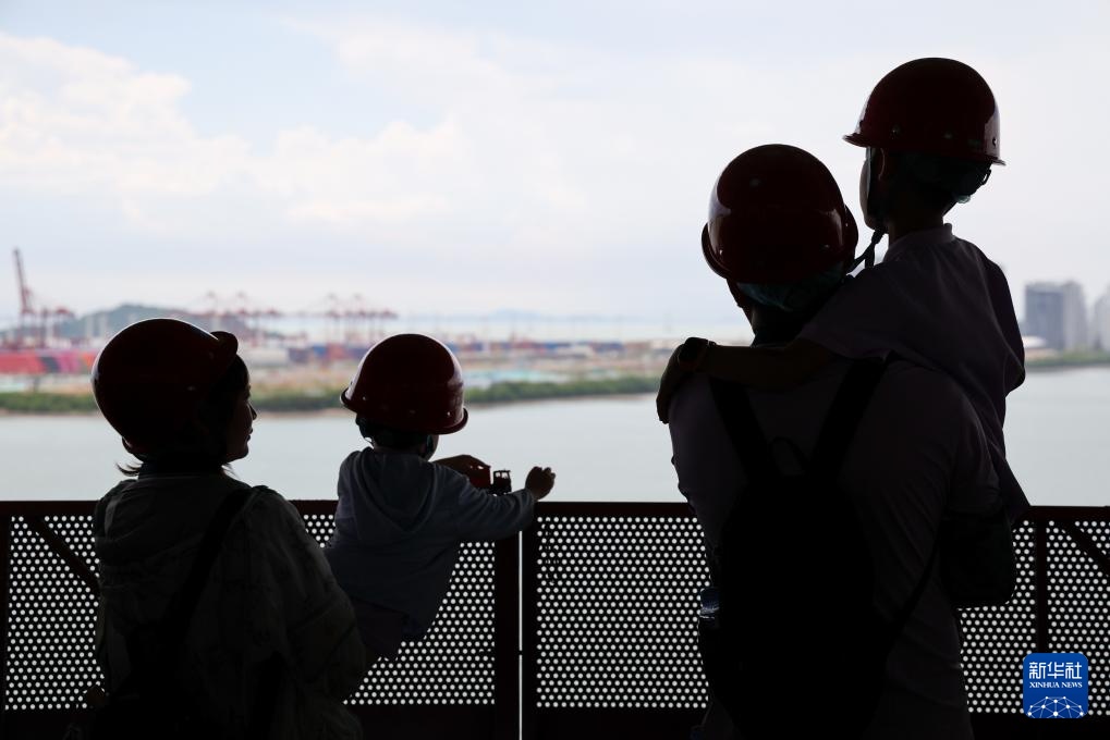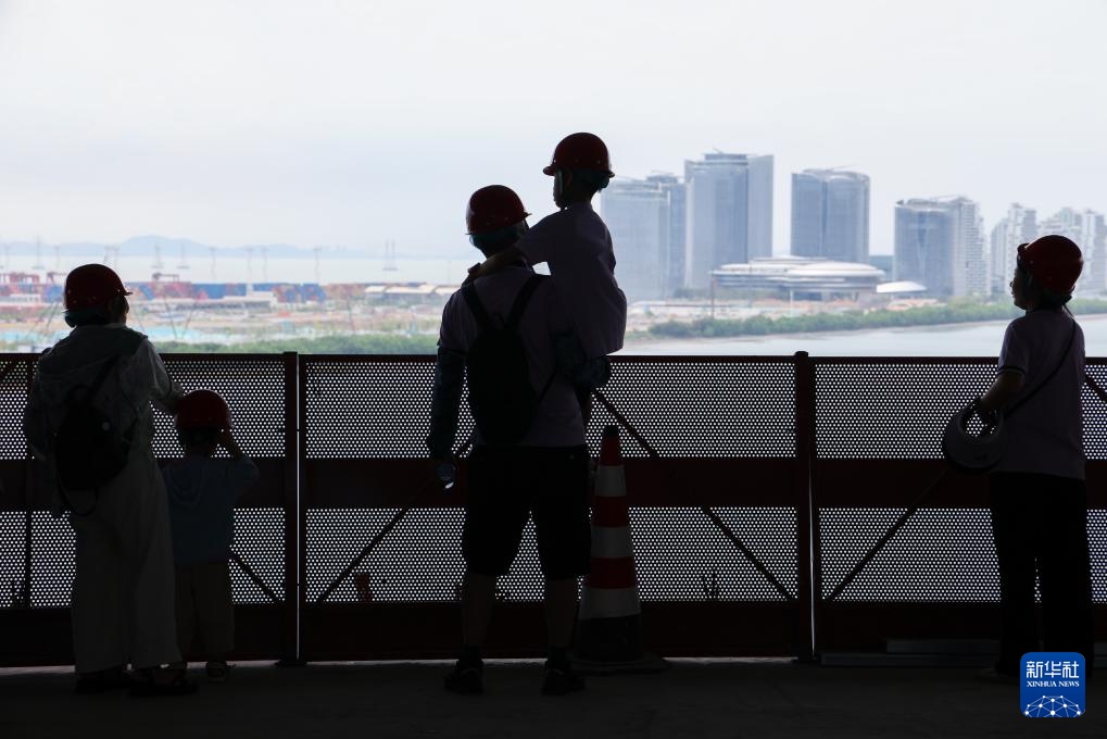 7月8日,“小候鸟”家庭在前海博物馆项目建设现场眺望前海湾。