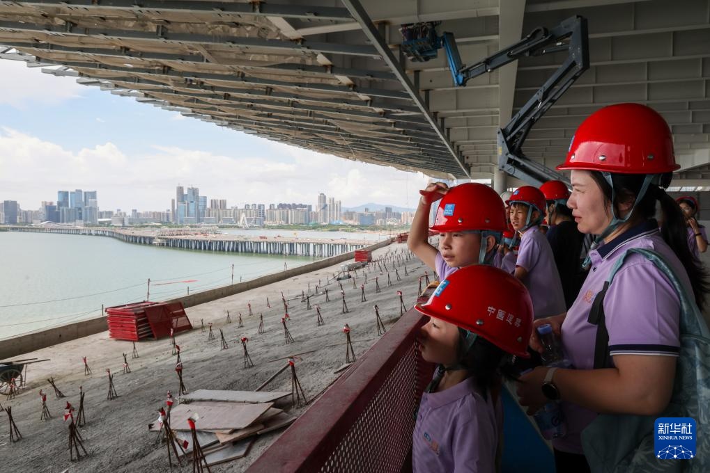 7月8日,为期4天的2025年“建功新时代 同心护未来”“小候鸟”夏令营在深圳开营。中建科工23个建设者家庭、38名建设者子女来深“反向探亲”,共赴一场“湾区幸福行”。