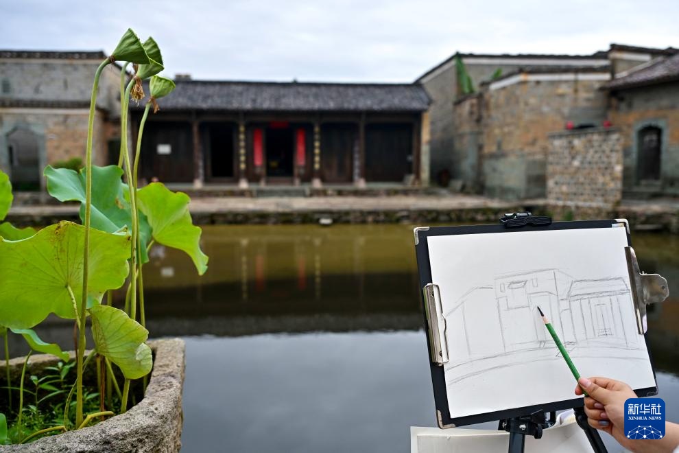 7月9日,金溪县第二中学学生在竹桥村绘画写生。