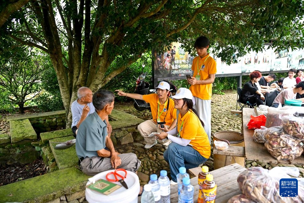 7月9日,来到金溪县开展暑期“三下乡”社会实践的江西旅游商贸职业学院学生在竹桥村就古建保护和文旅发展等情况与当地村民交流。