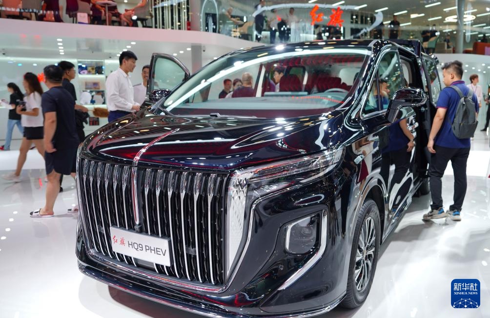 7月12日,游客在第22届长春国际汽车博览会红旗品牌展区参观。