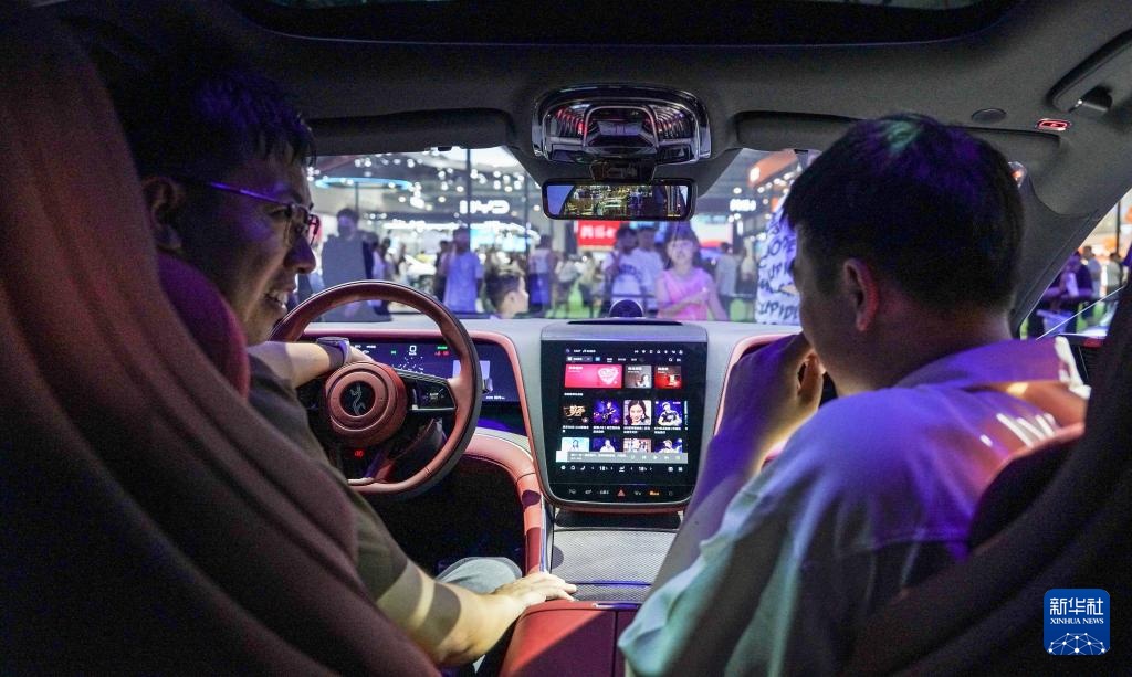 7月12日,游客在第22届长春国际汽车博览会体验智能驾驶系统。