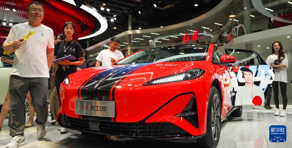 这是7月12日在第22届长春国际汽车博览会红旗品牌展区拍摄的红旗天工05车型。