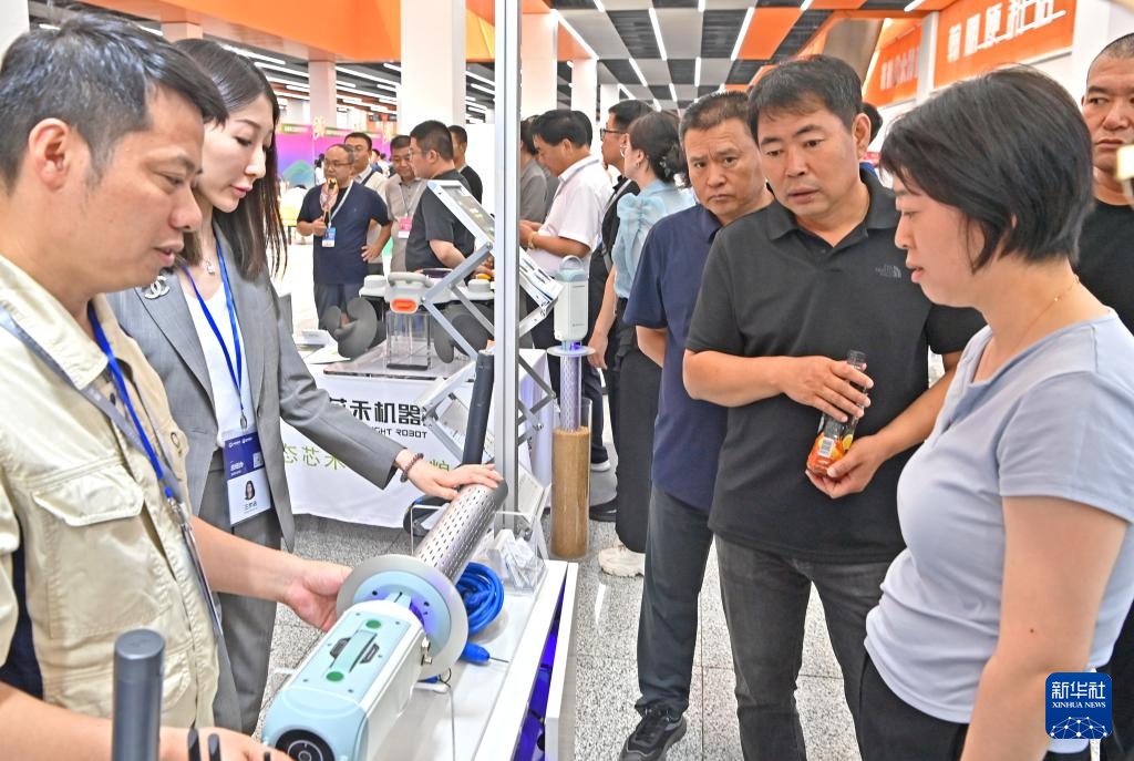 7月12日,观众在沈阳国际展览中心参观粮食监测器械。