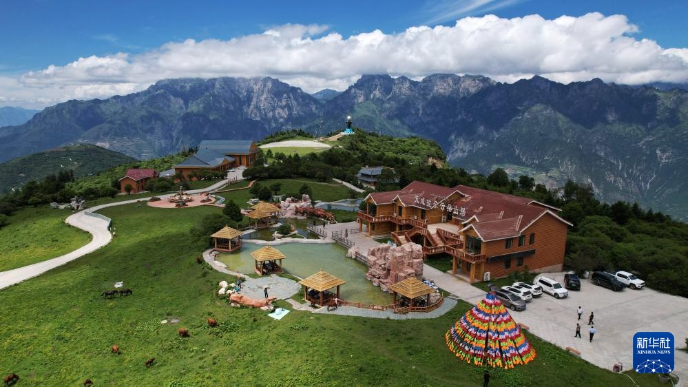 这是7月12日拍摄的舟曲拉尕山一处特色民宿(无人机照片)。