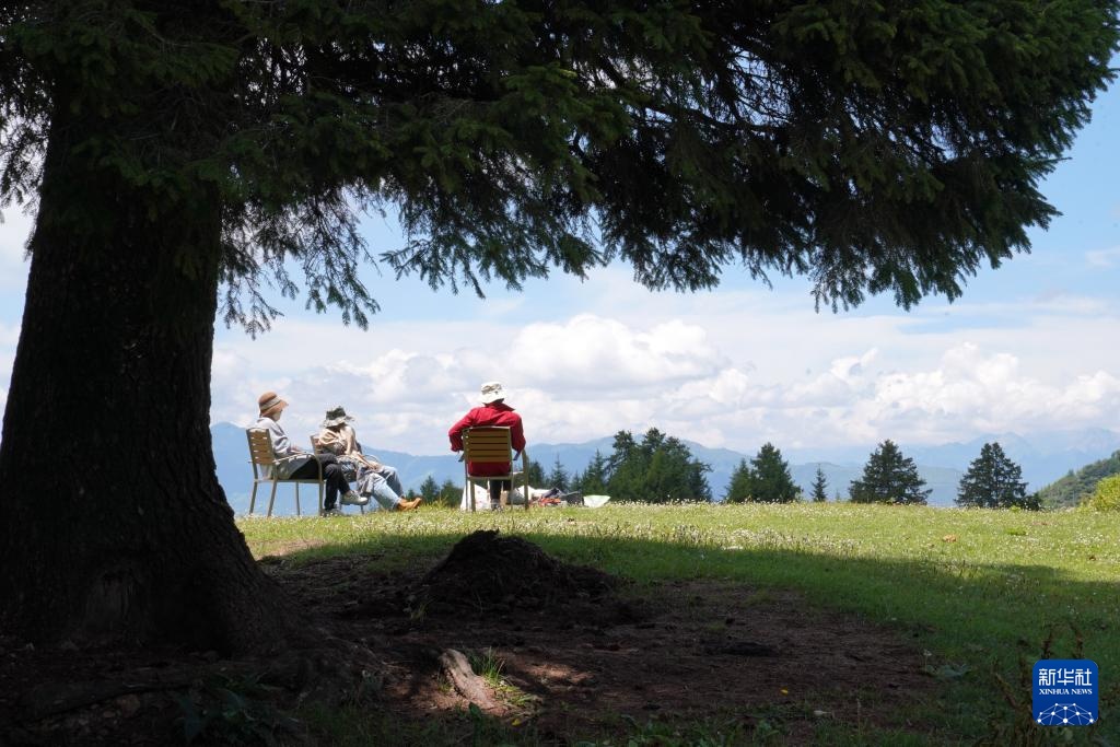游客在舟曲拉尕山上游玩(7月12日摄)。