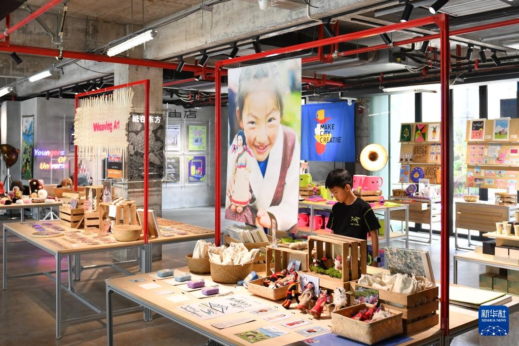 7月13日,小朋友在长沙油脂厂艺术商店内挑选商品。