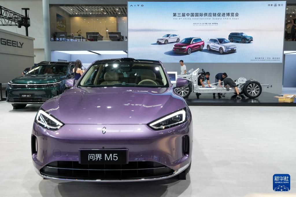 7月14日在第三届中国国际供应链促进博览会智能汽车链展区拍摄的问界展位。