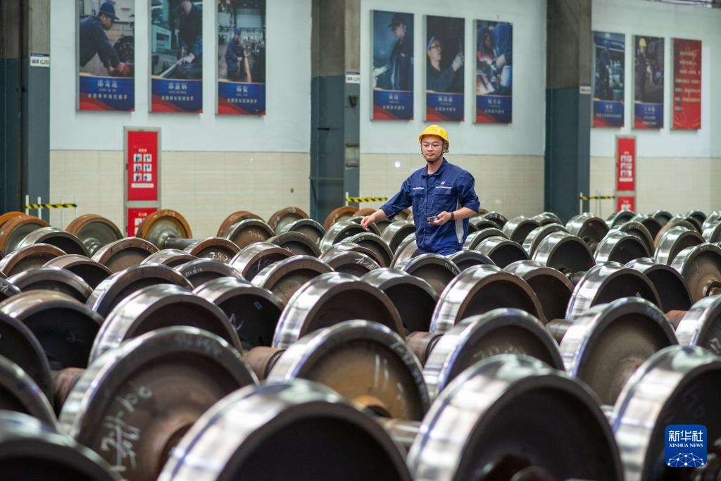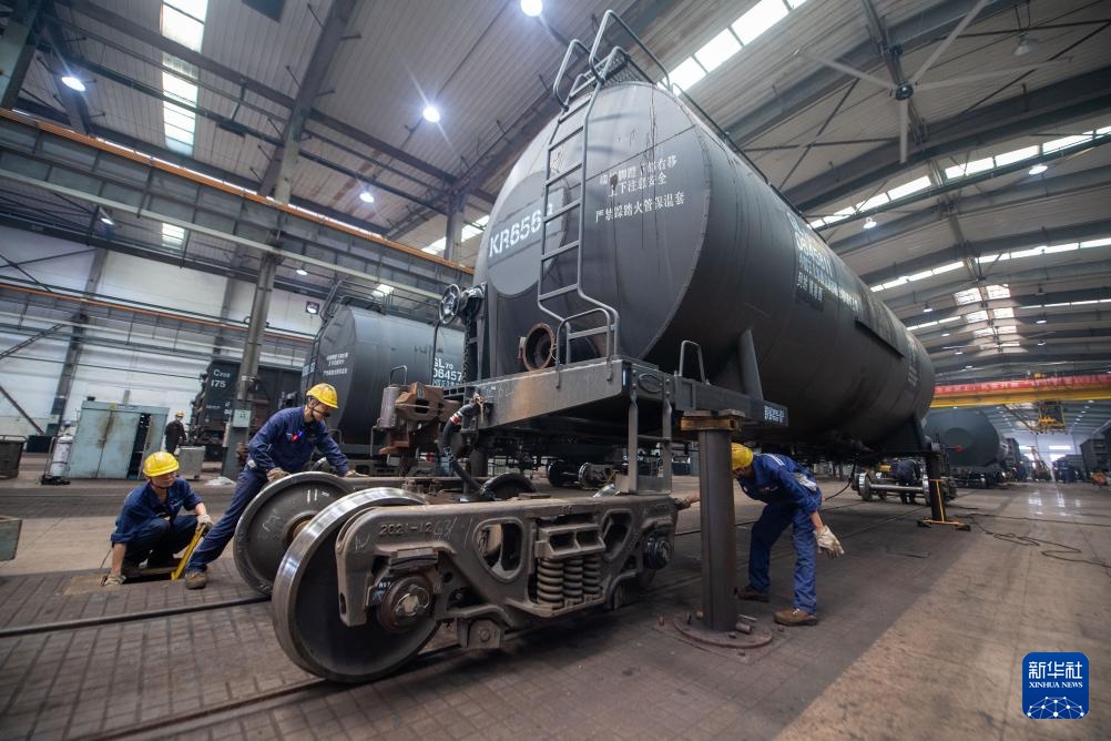 7月15日,铁路职工在中国铁路上海局集团有限公司杭州北车辆段乔司检修车间内工作。
