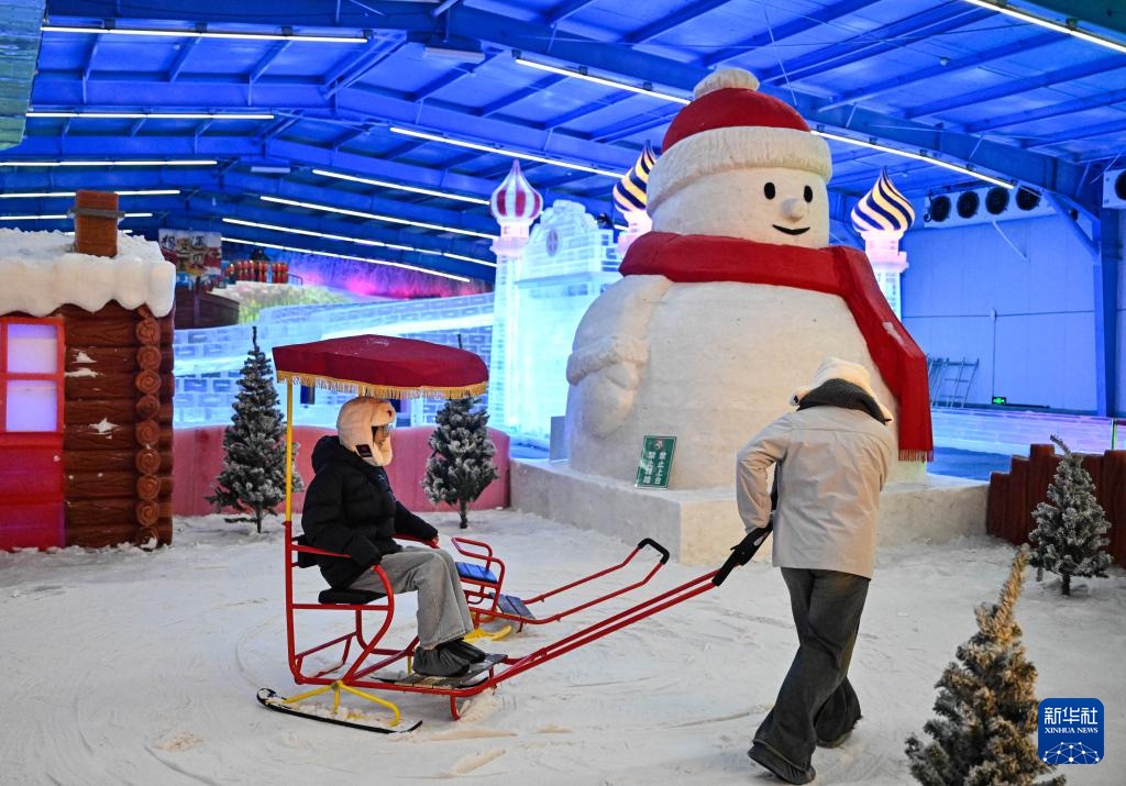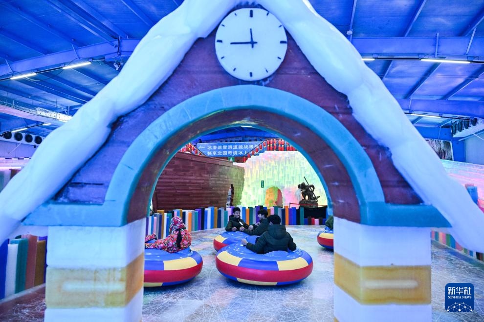 7月15日,游客在室内冰雪世界休闲娱乐。