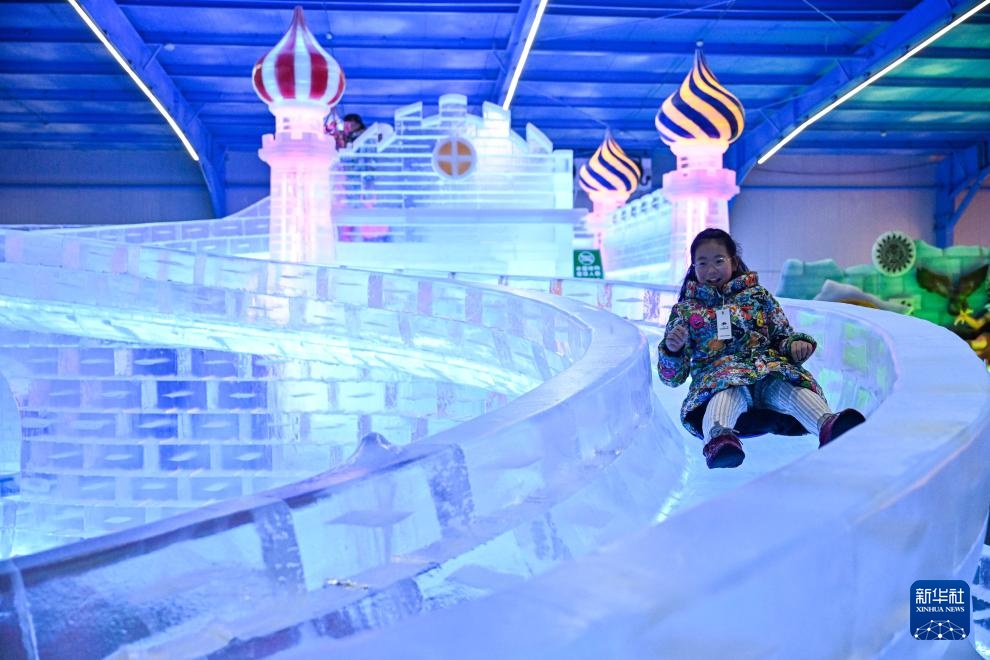 炎炎夏日,江苏淮安金湖水上森林景区内的春溪林海雪原迎来众多游客。据介绍,该室内冰雪世界由哈尔滨冰雕团队打造,面积超3000平方米,置身其中,仿佛走进冰雪童话世界,尽享夏日清凉。