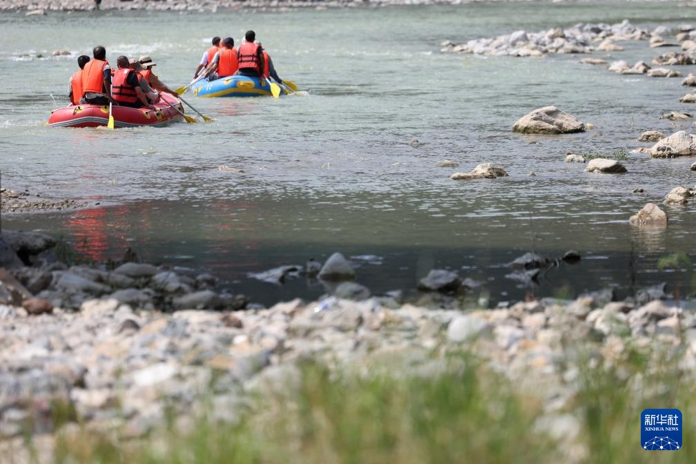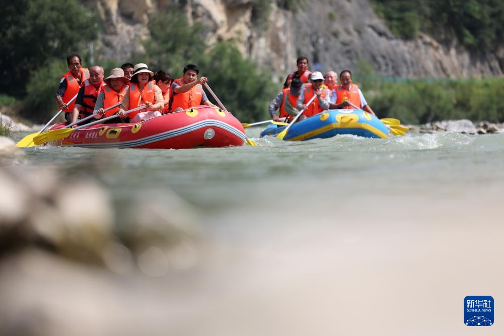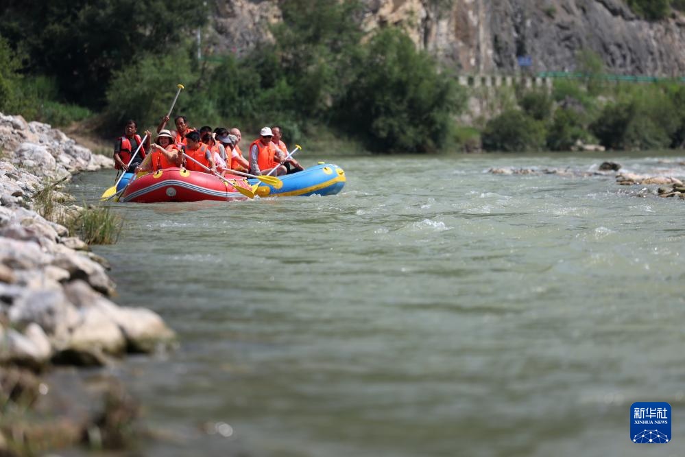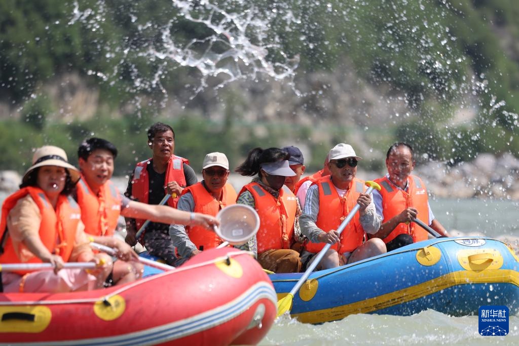 近日,甘肃省陇南市多地出现高温天气,不少游客来到位于陇南市徽县境内的嘉陵江峡谷体验漂流旅游项目,在亲近自然山水的同时,尽享“浪尖上”的夏日清凉。