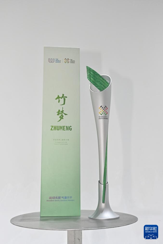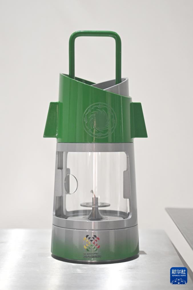 当日,成都世运会火炬传递系列装置(火炬“竹梦”、火种灯、采火棒、采火器、火种盆等)亮相。