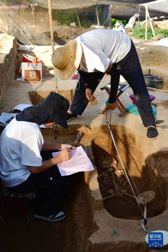 7月14日拍摄的大汶口国家考古遗址公园遗址发掘现场(无人机照片)。