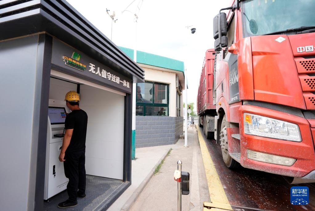 7月16日,交售粮食车辆在宁夏粮食集团银川滨河储备库进行无人值守过磅。