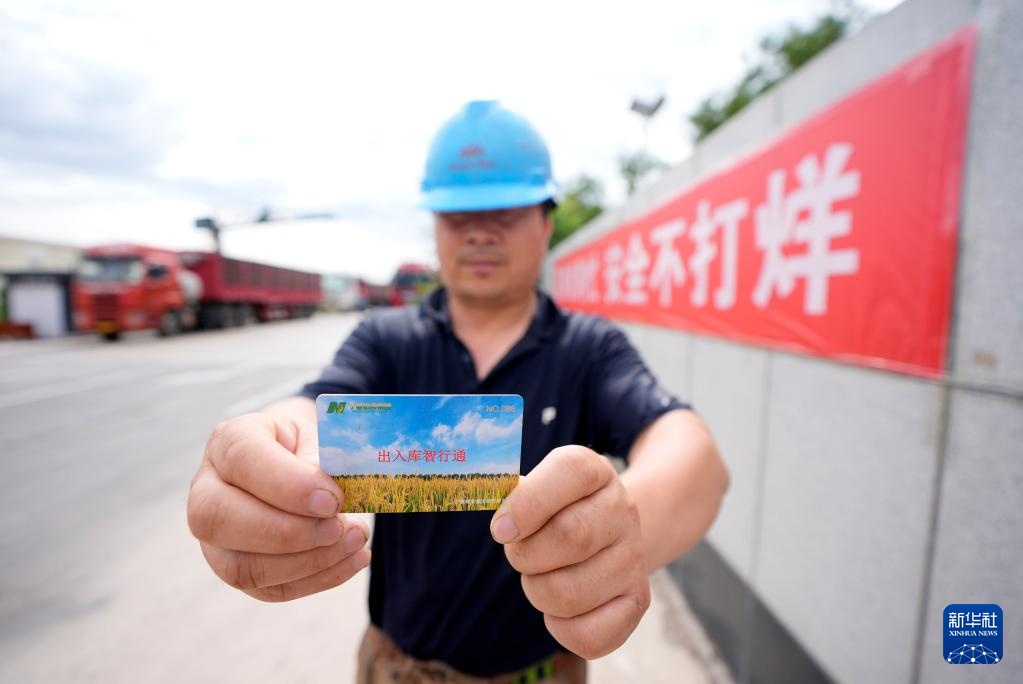 7月16日,交售粮食农户在宁夏粮食集团银川滨河储备库展示粮食“出入库智行通”卡。
