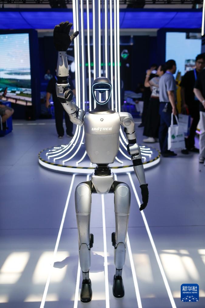 这是7月17日在数字科技链展区拍摄的宇树机器人。