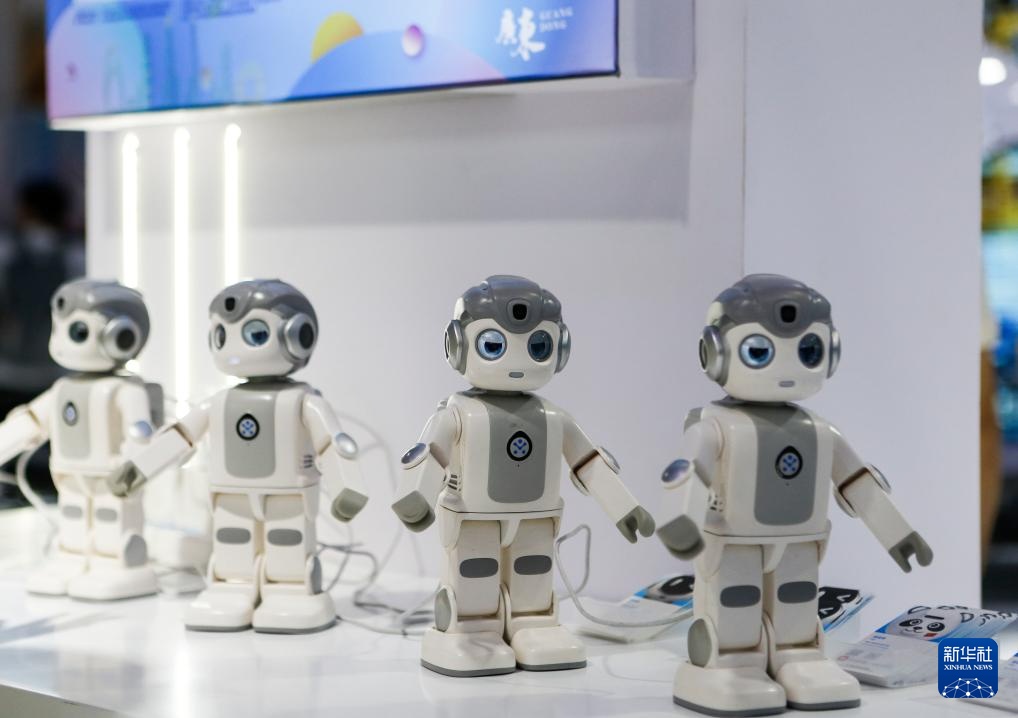 这是7月16日在智能汽车链展区优必选展台拍摄的桌面级人形机器人。