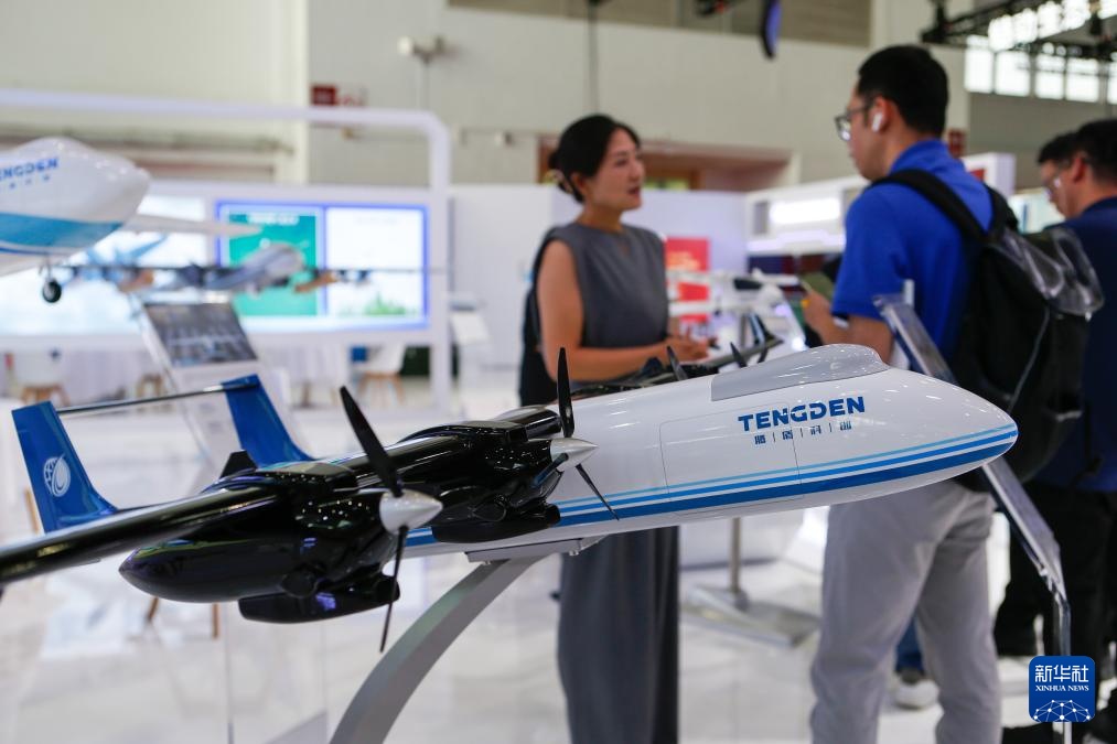 7月16日,参会者在智能汽车链展区高域展位了解一款低空飞行器。