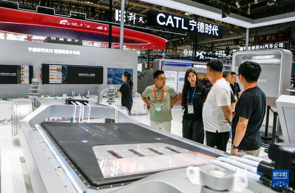 7月16日,参会者在智能汽车链展区了解宁德时代神行PLUS电池。