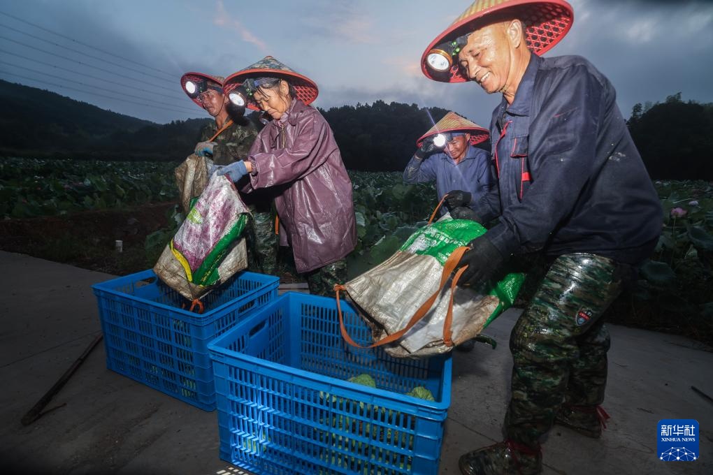 7月18日清晨,建德市大慈岩镇的果莲种植户把刚采摘的莲蓬集中起来准备送往加工车间,经过分拣、包装后新鲜莲子当天就发往各地市场。